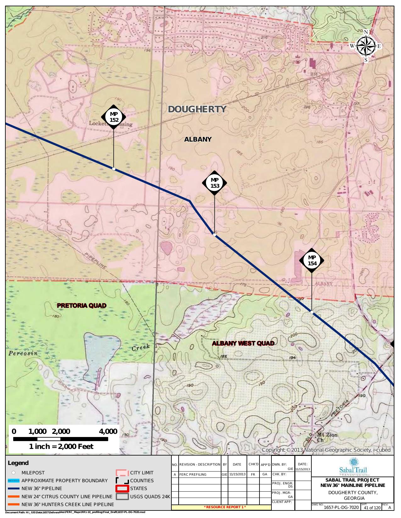 Albany South, Dougherty County, Georgia, in General Project Description, by SpectraBusters, for FERC Docket No. PF14-1-000, 15 November 2013, converted by SpectraBusters